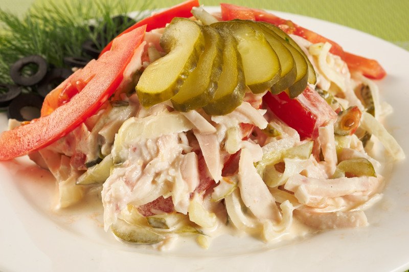 Состав: ветчина, грудка куриная в/к, огурец маринованный, подмидор свежий, лук репчатый, соль. КБЖУ на 100 грамм: 215,3/6,9/18,0/6,4 *тара оплачивается отдельно*